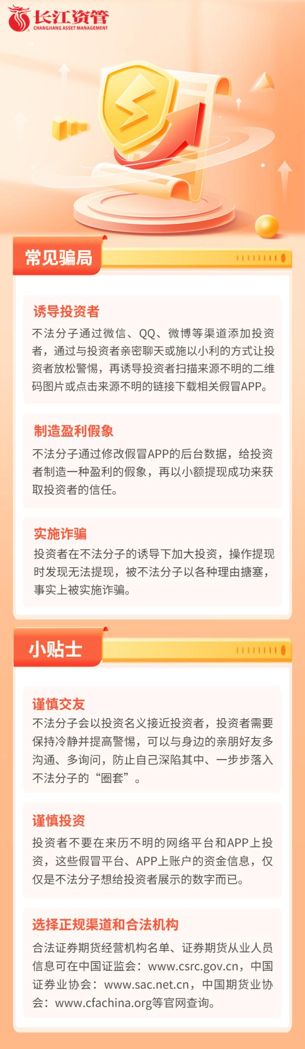 近期,有不法分子冒用長江證券(上海)資產管理有限公司(以下簡稱“本公司”)名義,通過微博、QQ等即時通訊工具,誘導不明真相的投資者下載仿冒APP應用軟件,進行非法證券活動,嚴重損害投資者以及本公司的合法權益。為維護廣大投資者的合法權益,維護本公司聲譽,本公司特此鄭重聲明如下: